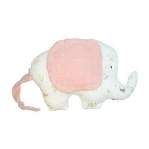 parte exterior en algodón pima y orejitas en algodón 100%, Ojitos bordados, el relleno material hipoalergénico apto para las manitas de tu bebé extra suave y de un tamaño ideal para que se pueda usar desde los primeros momentos en que tu bebé empiece a sostenter objetos con sus manos.